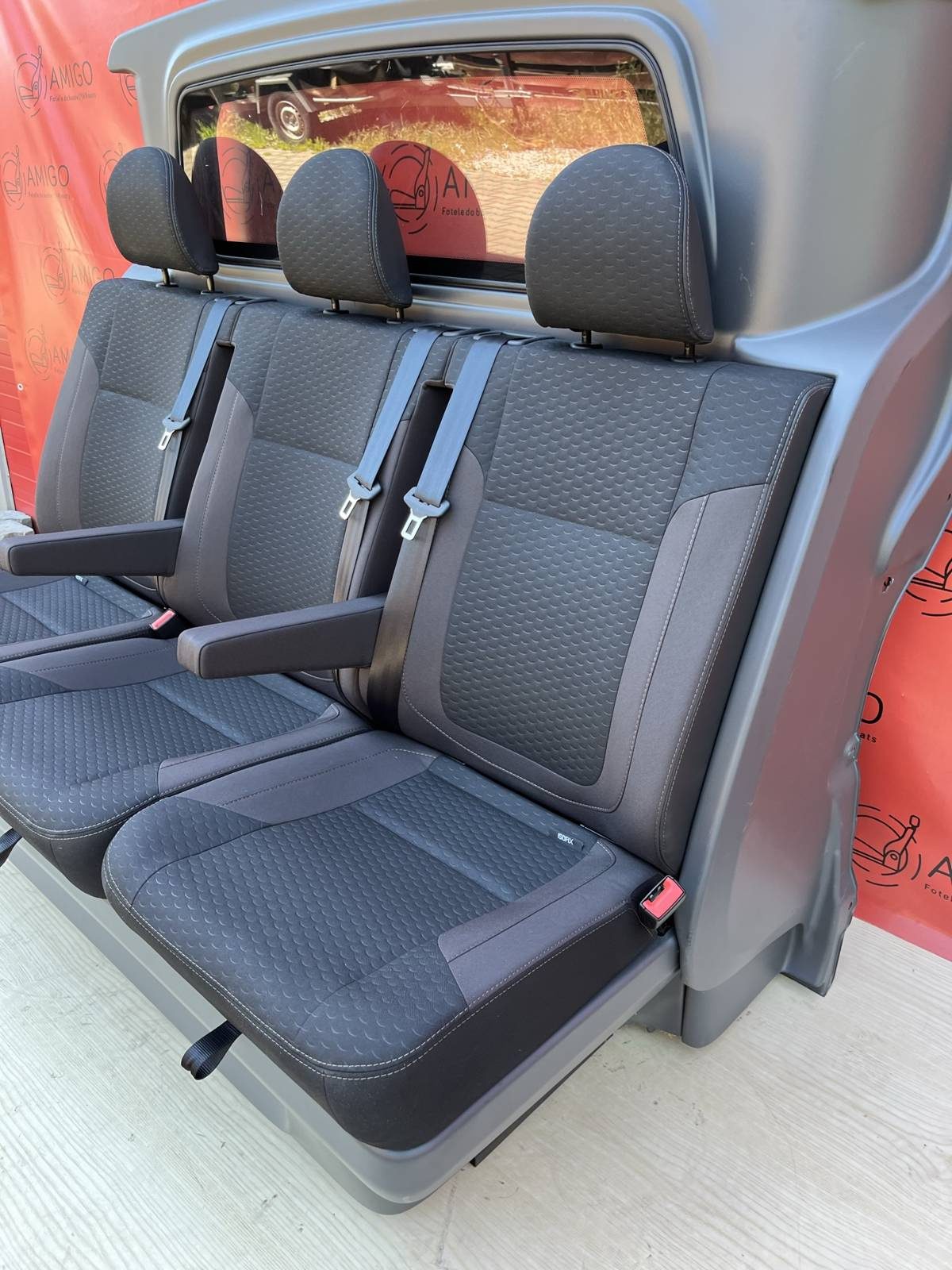 • 3 adjustable seats with two armrests and ISOFIX on the outer seats